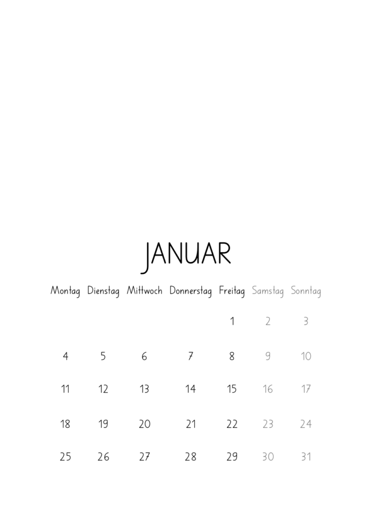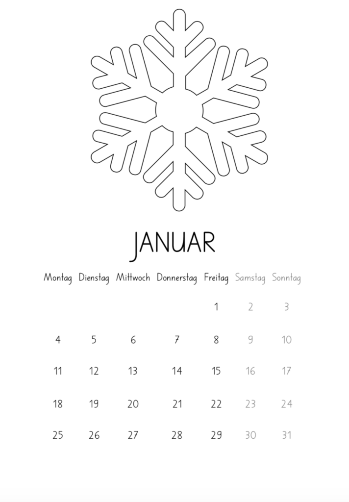 Wer will kann sich auch das Dokument nehmen, welches bereits bei jedem Monat Gestaltungsideen hat und diese dann individuell umsetzen.