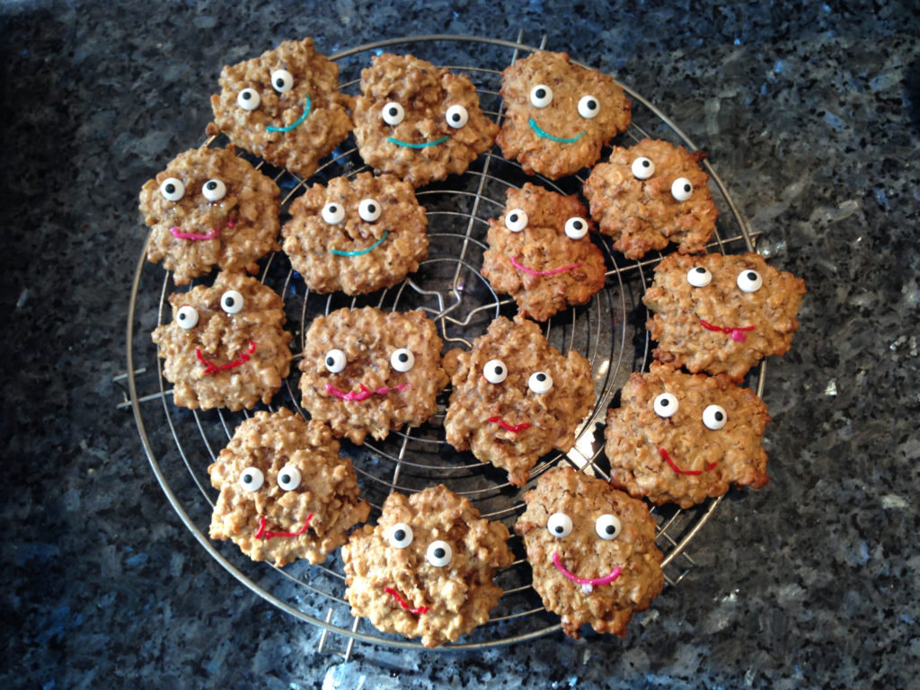 Süsses ist immer eine gute Idee (in Masse natürlich). Da ich selber aber unglaublich gerne Süssigkeiten habe, probiere ich diese auch immer wieder aus. Und diese Kekse aus Haferflocken waren richtig lecker und lustig zum essen!
