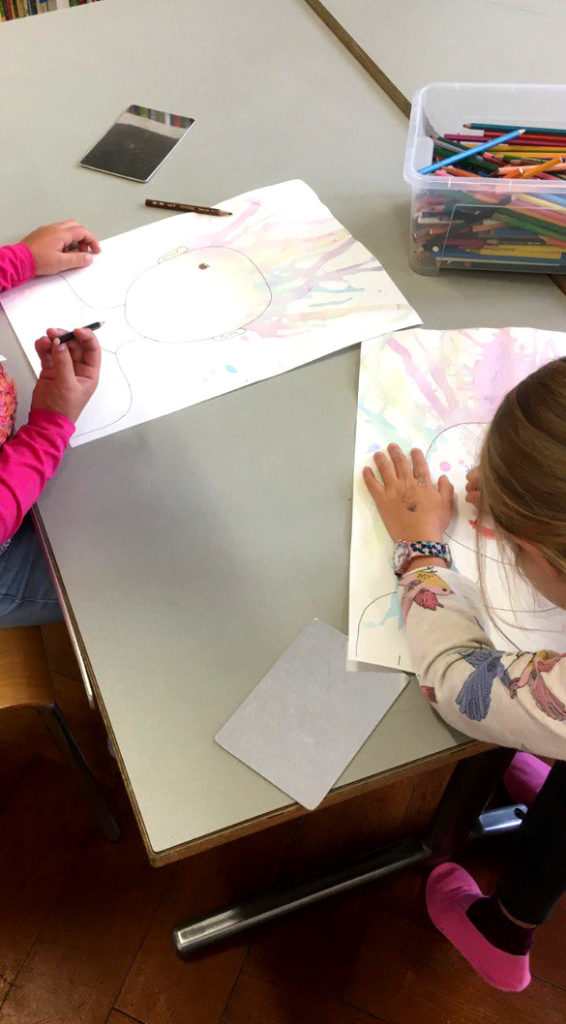 Die Kinder haben die Aufgabe sehr lustig gefunden und wir haben die Bilder sogar am Elternabend aufgehängt und den Eltern die Aufgabe verteilt, ihr Kind zu erkennen. Die meisten mussten ab dem Porträt ihres Kindes schmunzeln 🙂